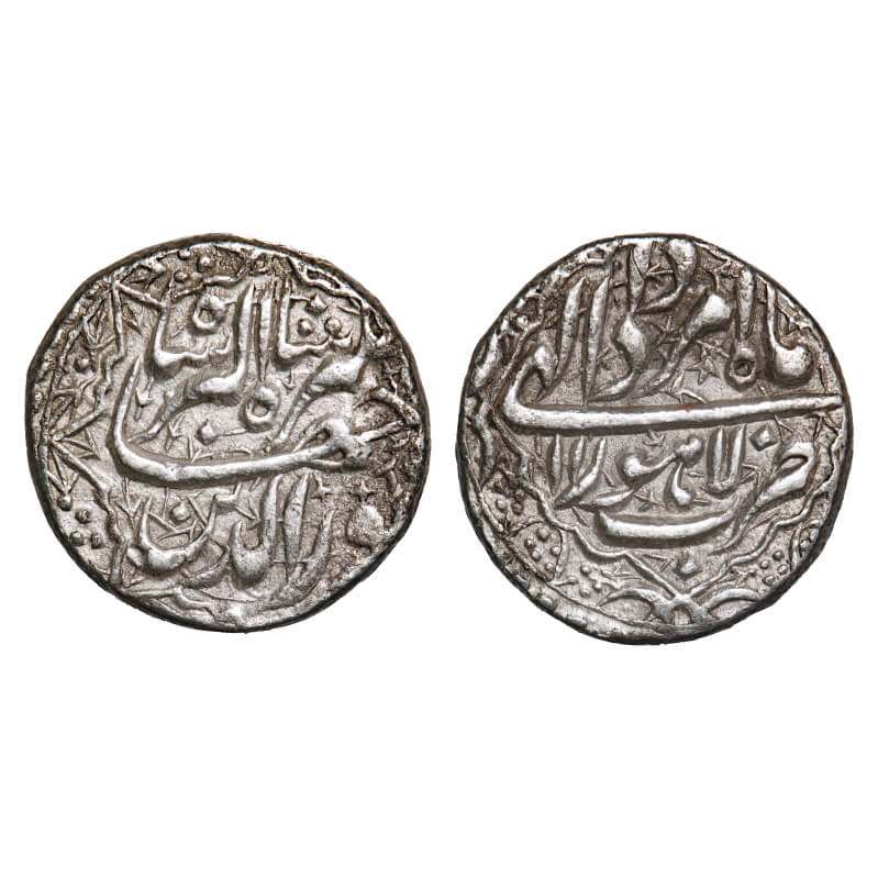 Jahangir (AH 1014-1037/1605-1627 AD), Silver Rupee, 11.38g, Lahore Mint, Ilahi Type, Month 'Amardad' Year 11. with ornamented border both sides. KM 145.11. Very Fine+, Very Scarce.