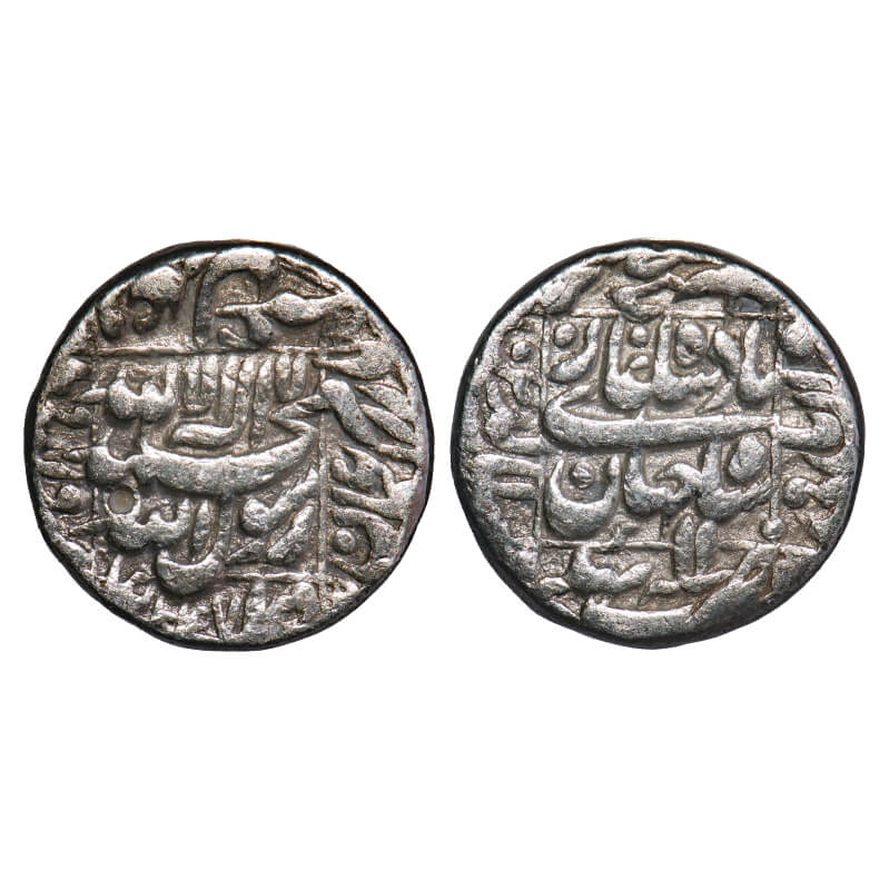 Shah Jahan I (AH 1037-1068/1628-1658 AD), Silver Rupee, 11.31g, Bhakkar Mint, AH 1047/11 RY, name of four caliphs and kalima in circular area on both sides.KM 235.7. Very Fine, Scarce.
