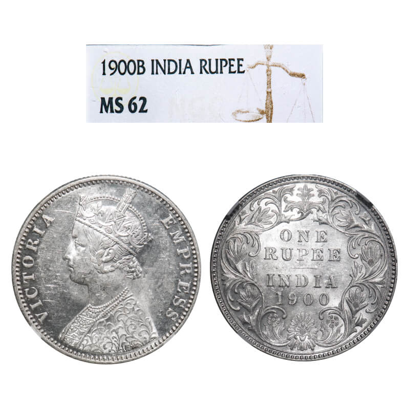 Victoria Empress, Silver, Rupee, 1900, Bombay Mint, A3(i)/I(ii), 'B' incused. F. Prid Unlisted. GK 591. NGC Slab MS 62. Rare.