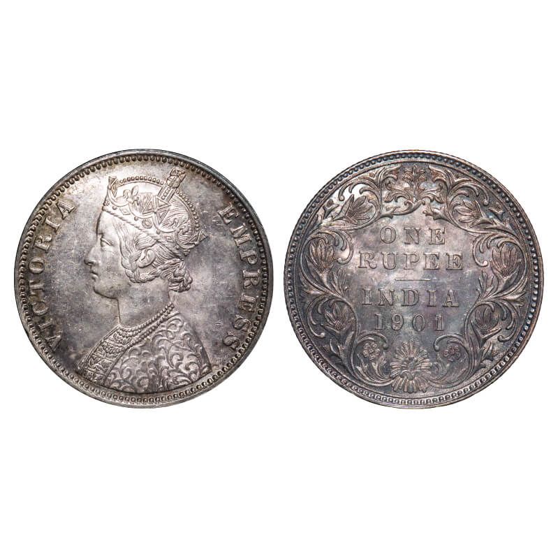 Victoria Empress, Silver, Rupee, 1901, Bombay Mint, A3(i)/I(ii), 'B' incused. F. Prid Unlisted. GK 591. Uncirculated, Toned. Scarce.