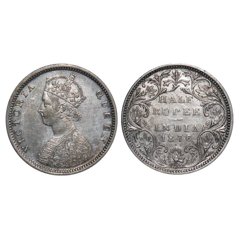 Victoria Queen, Silver, Half Rupee, 1876, Bombay Mint, B2/II, Dot. F. Prid 287. GK 606. About Uncirculated. Very Scarce.