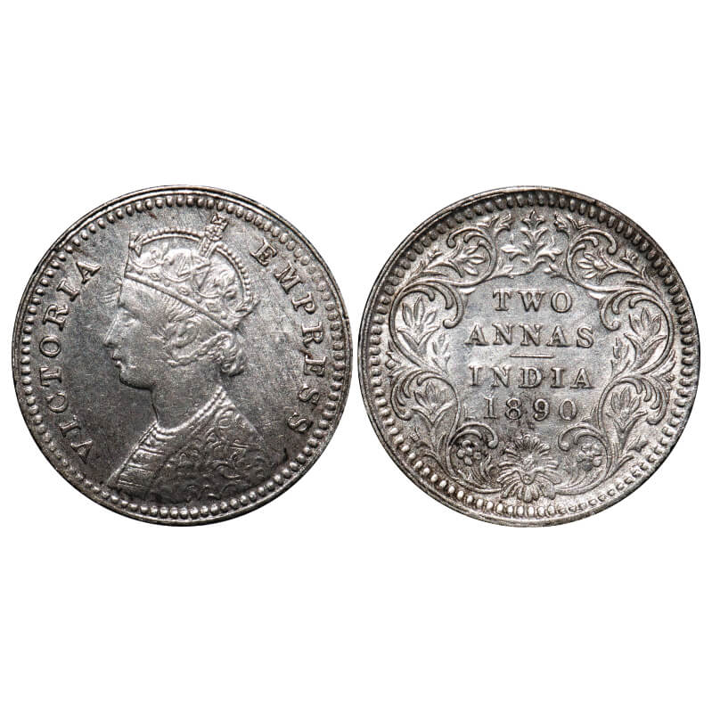Victoria Empress, Silver, 2 Annas, 1890, Calcutta Mint, B/II, 'C' incused. F. Prid 505. GK 793. About Extremely Fine. Scarce.