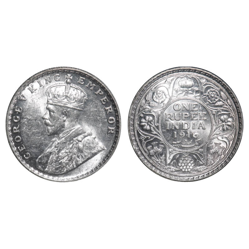 George V, Silver, Rupee, 1916, Calcutta Mint, No dot. F. Prid 212. GK 1033. Uncirculated. Scarce....