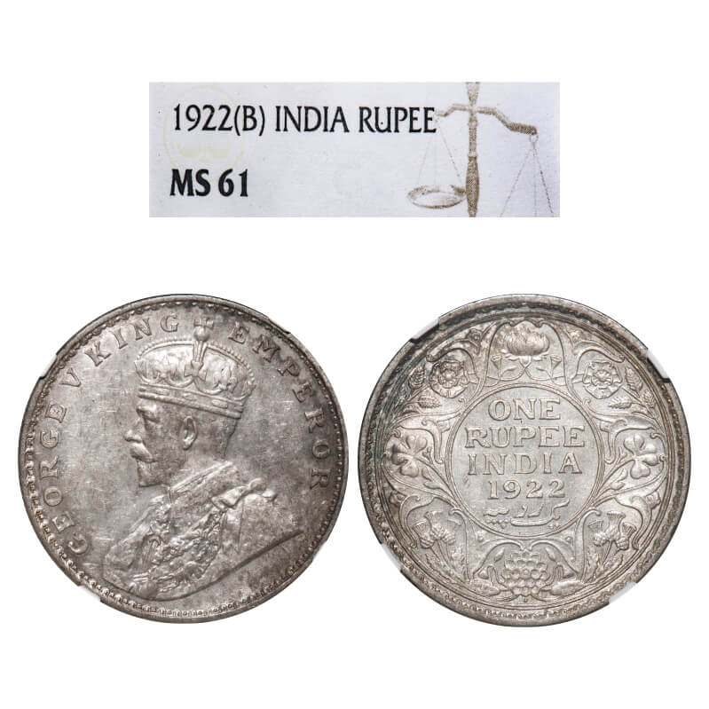 George V, Silver, Rupee, 1922, Bombay Mint, Dot. F. Prid 228. GK 1044. NGC Slab MS 61. Very Rare.