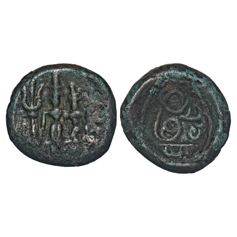 Madurai Nayaks, Copper Unit, 2.98g, 13.84x14.66mm, Obv. Shiv Parvathi with thrisul, Rev: Sri Mangama. About Very Fine, Very Scarce.