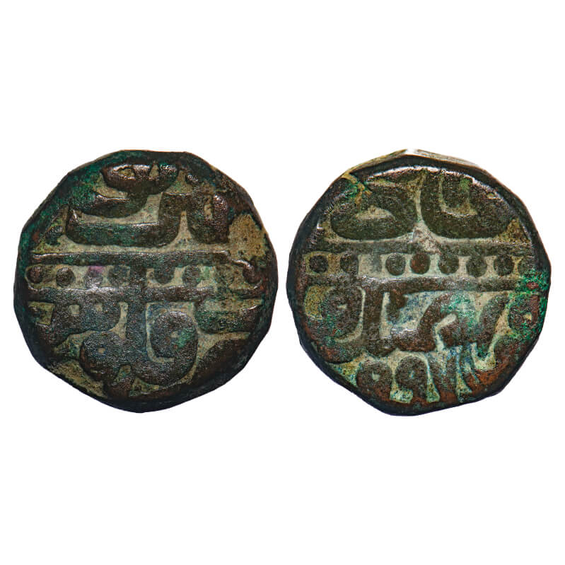 Akbar, Copper Dam, 20.48g, Chainpur Mint, AH 997, KM unlisted. Very Fine, Very Scarce.
