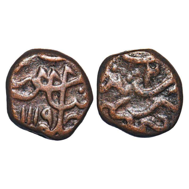 Shah Alam Bahadur, Copper Paisa, 12.22g, Parenda Mint with leaf as mint mark on reverse. KM unliste...