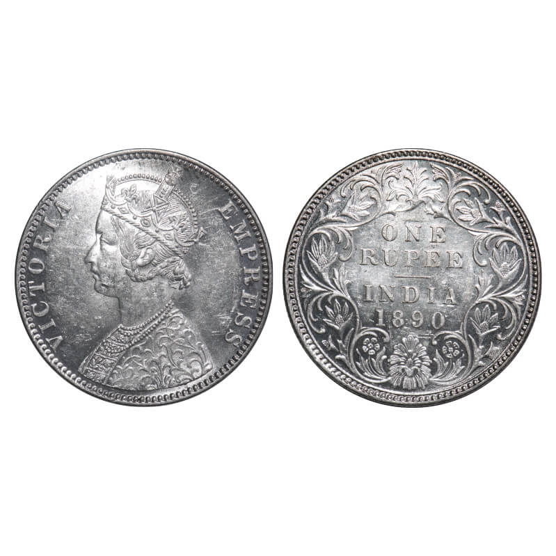 Victoria Empress, Silver, Rupee, 1890, Bombay Mint, C2/I, 'B' incused, Flat 1. F. Prid 178. GK 566. Brilliant Uncirculated. Very Scarce.
