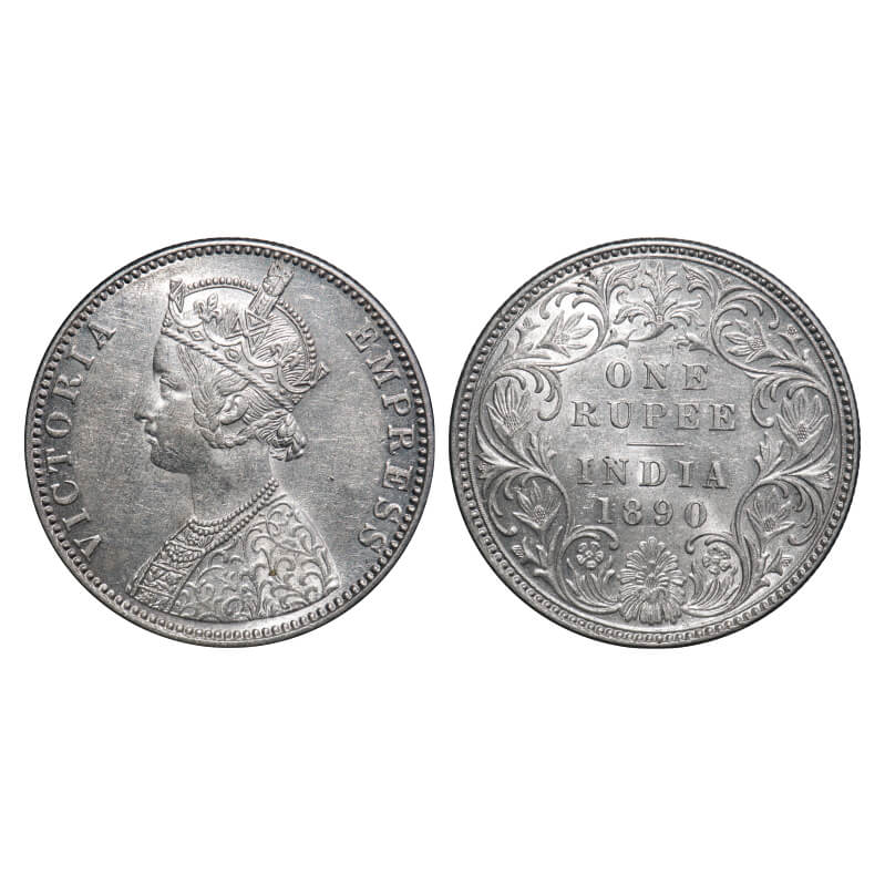 Victoria Empress, Silver, Rupee, 1890, Calcutta Mint, C3/I(i), 'C' incused. F. Prid 131. GK 567. Uncirculated. Rare.