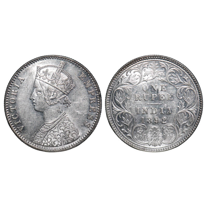 Victoria Empress, Silver, Rupee, 1892, Calcutta Mint, C3/I, 'C' incused. F. Prid 133. GK 576. Uncirculated. Very Scarce.