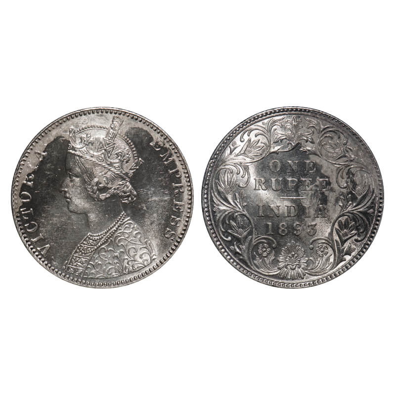 Victoria Empress, Silver, Rupee, 1893, Bombay Mint, C2/I(ii), 'B' incused. F. Prid 182. GK 578. Almost Uncirculated. Very Scarce.