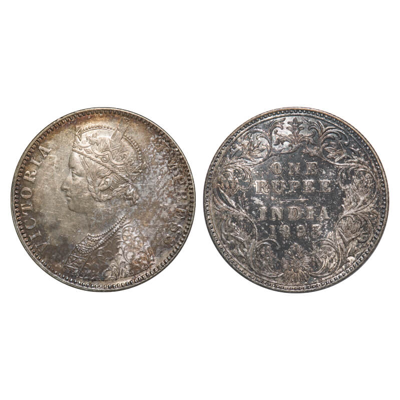 | Victoria Empress, Silver, Rupee, 1893, Bombay Mint, C2/I(ii), 'B' incused, Flat 1. F. Prid 182. GK 579. Almost Uncirculated,Toned. Very Scarce. |