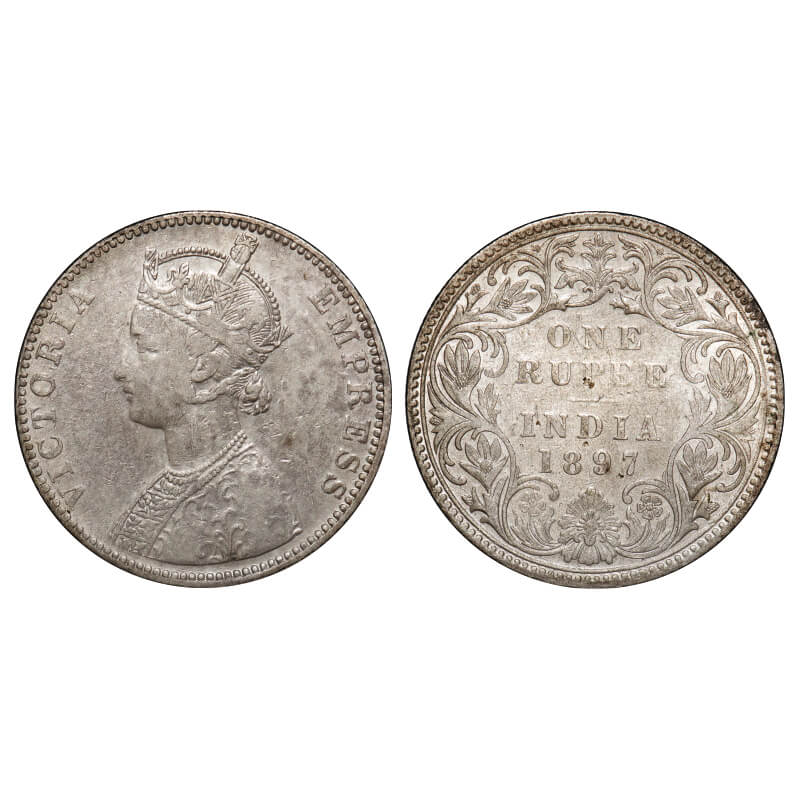 Victoria Empress, Silver, Rupee, 1897, Bombay Mint, C2/I(ii), 'B' incused. F. Prid. GK 581. Very Fine+. Rare.