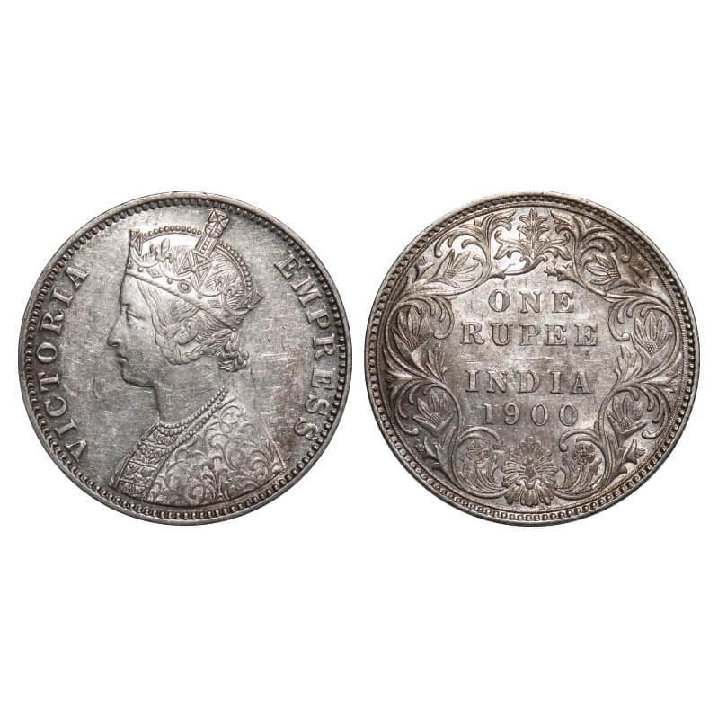 Victoria Empress, Silver, Rupee, 1900, Bombay Mint, A3(i)/I(ii), 'B' incused, Flat 1. F. Prid 186. GK 589. Almost Uncirculated. Very Scarce.