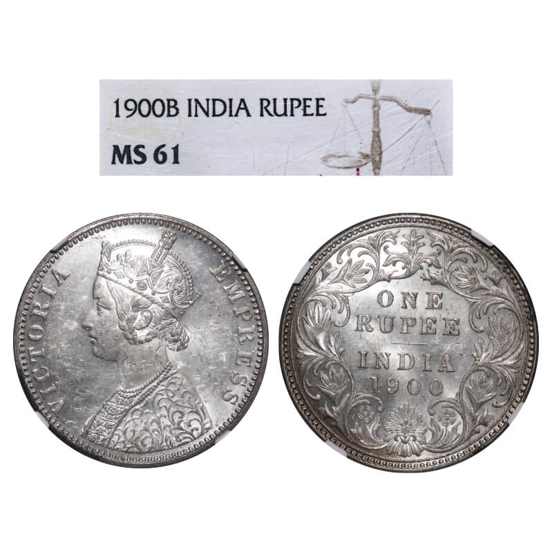Victoria Empress, Silver, Rupee, 1900, Bombay Mint, A3(i)/I(ii), 'B' incused. F. Prid 186. GK 589. NGC Slabbed MS 61. Rare.