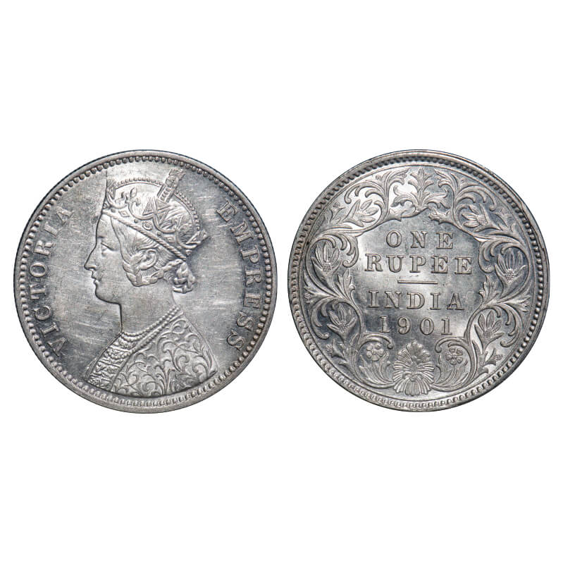 Victoria Empress, Silver, Rupee, 1901, Calcutta Mint, C3/I(i), 'C' incused. F. Prid 139. GK 598. Mint State. Rare..