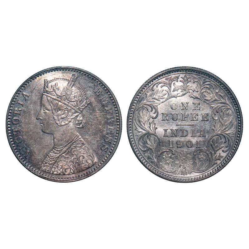 Victoria Empress, Silver, Rupee, 1901, Calcutta Mint, C3/I(i), 'C' incused. F. Prid 139. GK 598. Brilliant Uncirculated, Toned. Rare.