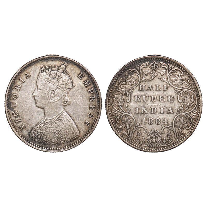 Victoria Empress, Silver, Half Rupee, 1884, Bombay Mint, A/II, Dot, Ex-mount. F. Prid 292. GK 625. Very Fine+. Very Scarce.