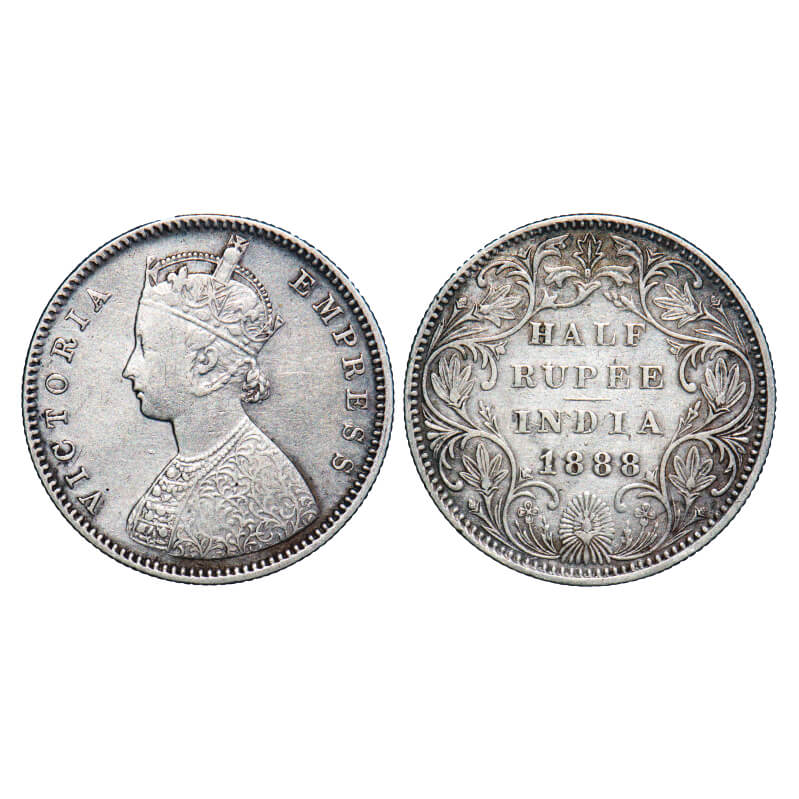 Victoria Empress, Silver, Half Rupee, 1888, Bombay Mint, A/II(i), 'B' raised. F. Prid 298. GK 640. Very Fine+. Very Scarce.