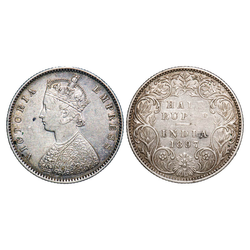 Victoria Empress, Silver, Half Rupee, 1897, Bombay Mint, A/I, 'B' incused, Slight traces of numeral 4 seen behind numeral 7. F. Prid 305. GK 653. Very Fine+. Very Rare.