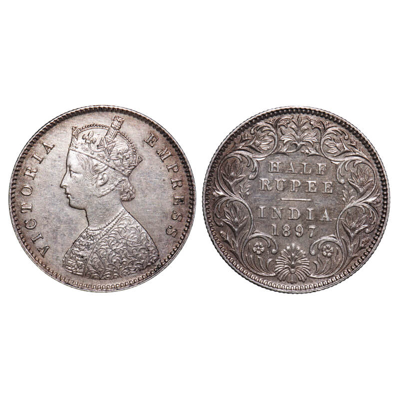 Victoria Empress, Silver, Half Rupee, 1897, Calcutta Mint, A/I, 'C' incused. F. Prid 280. GK 657. Uncirculated. Rare.