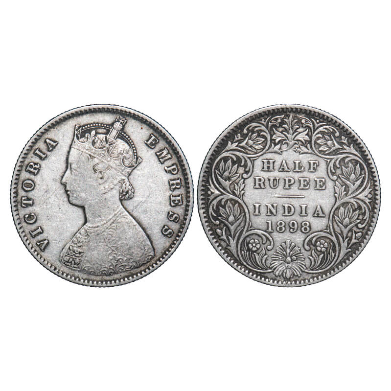 Victoria Empress, Silver, Half Rupee, 1898, Calcutta Mint, A/I, 'C' incused. F. Prid 281. GK 661. Fine. Scarce.