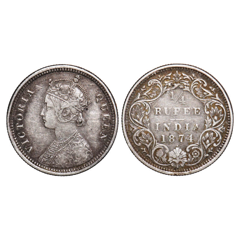 Victoria Empress, Silver, 1/4 Rupee, 1874, Bombay Mint, A/I, Dot. F. Prid 405. GK 664. Very Fine+. Very Scarce.