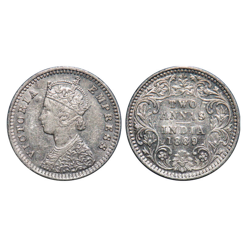 Victoria Empress, Silver, 2 Annas, 1889, Bombay Mint, B/II, 'B' incused. F. Prid 542. GK 787. About Uncirculated. Very Scarce.