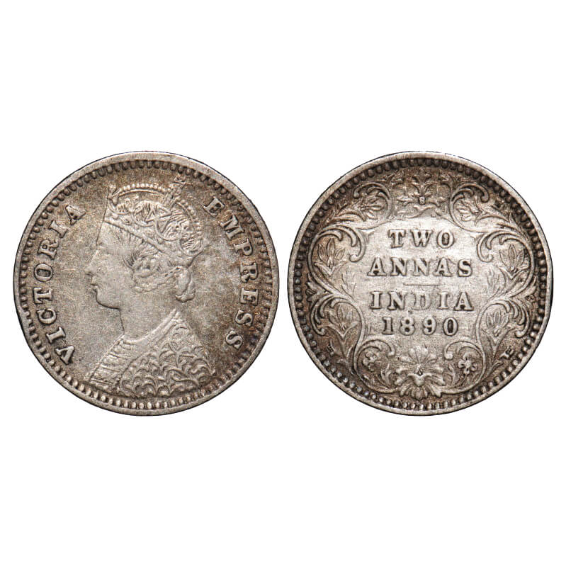 Victoria Empress, Silver, 2 Annas, 1890, Bombay Mint, B/II, 'B' raised. F. Prid 544. GK 791. Extremely Fine. Very Scarce.