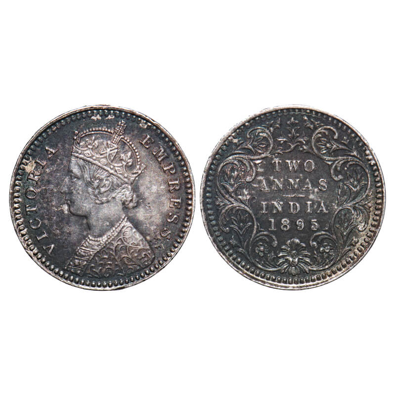 Victoria Empress, Silver, 2 Annas 1895, Calcutta Mint, B/II, 'C' incused. F. Prid 510. GK 803. About Uncirculated, Toned. Very Scarce.
