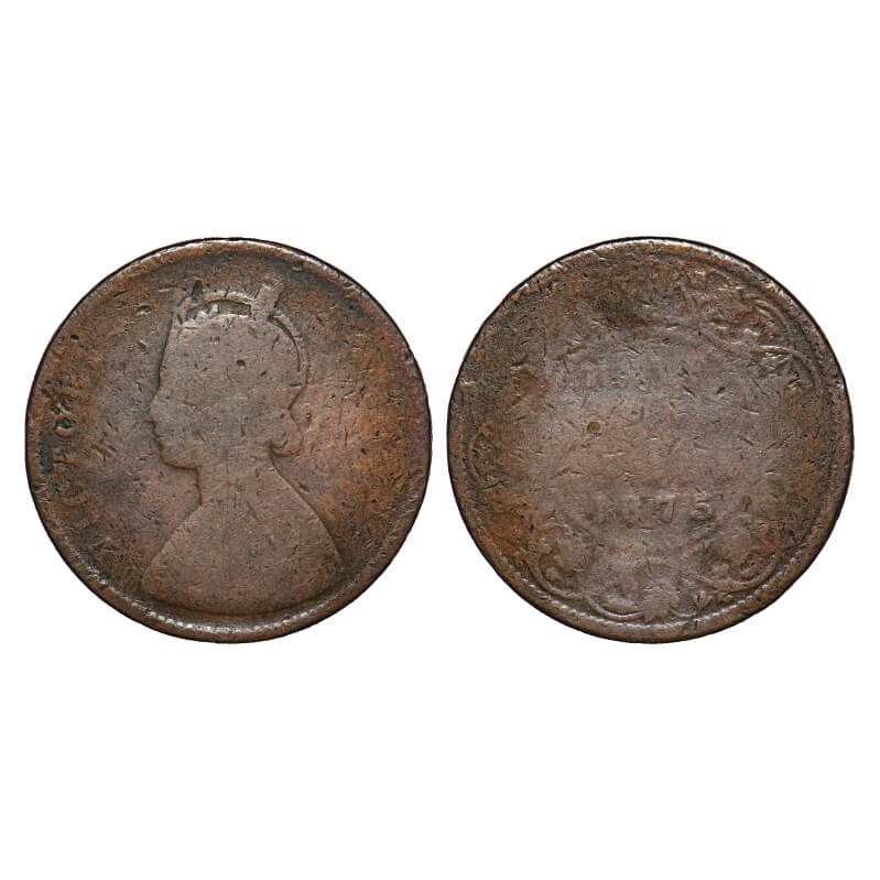 Victoria Queen, Copper, Quarter Anna, 1875, Calcutta Mint, B/II, No mint mark. F. Prid 609. GK 825....