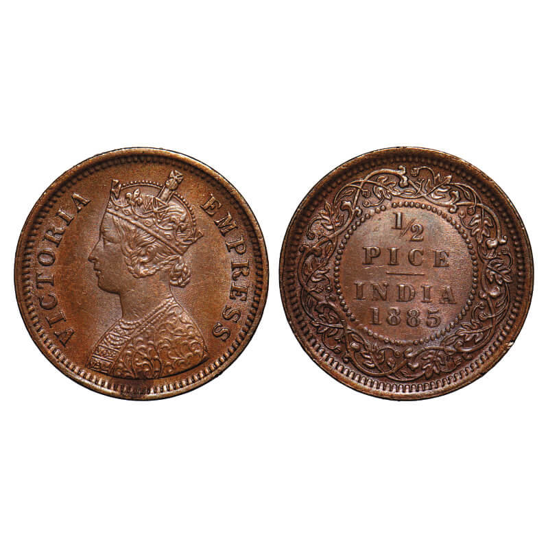 Victoria Empress, Copper, 1/2 Pice, 1885, Calcutta Mint, A/I, No mint mark. F. Prid 717. GK 863. Extremely Fine. Very Scarce.