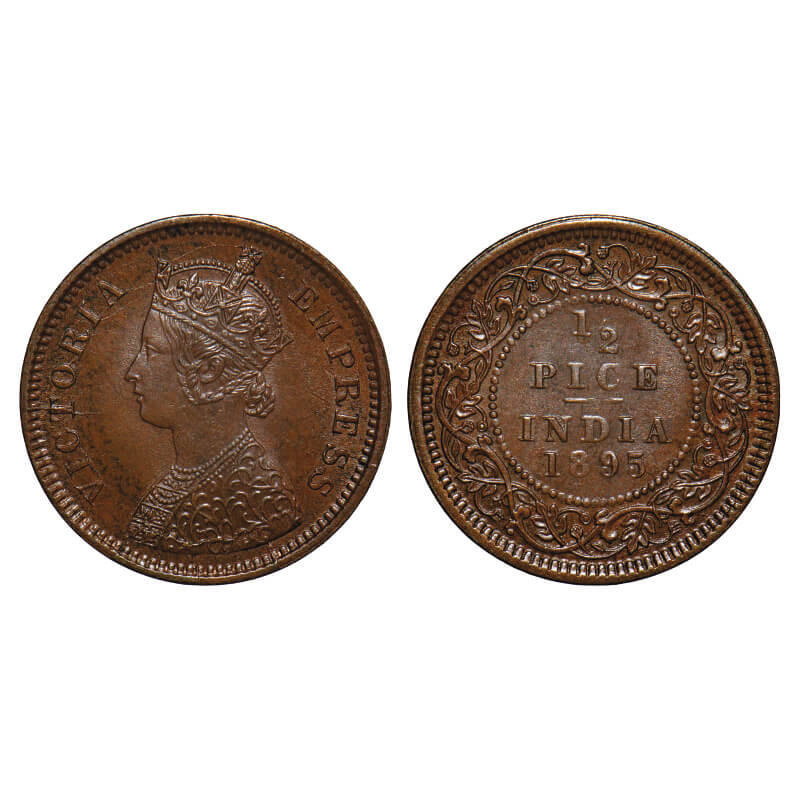 Victoria Empress, Copper, 1/2 Pice, 1895, Calcutta Mint, A/I, No mint mark. F. Prid 728. GK 875. Uncirculated. Rare.