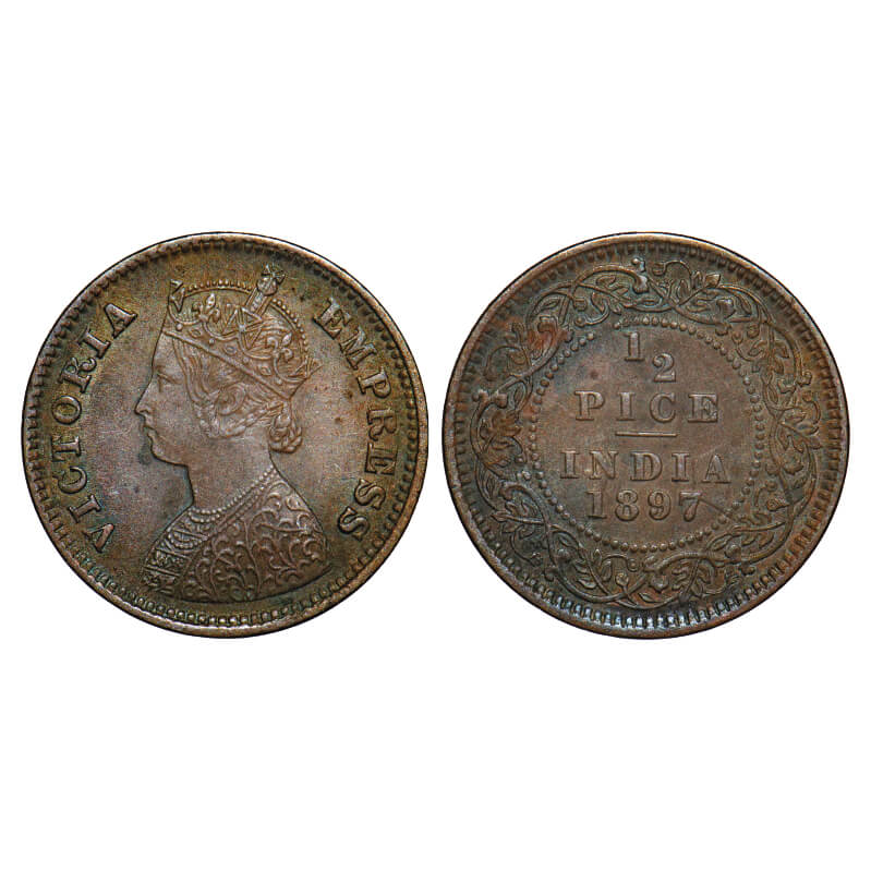 Victoria Empress, Copper, 1/2 Pice, 1897, Calcutta Mint, A/I, No mint mark. F. Prid 730. GK 877. Br...