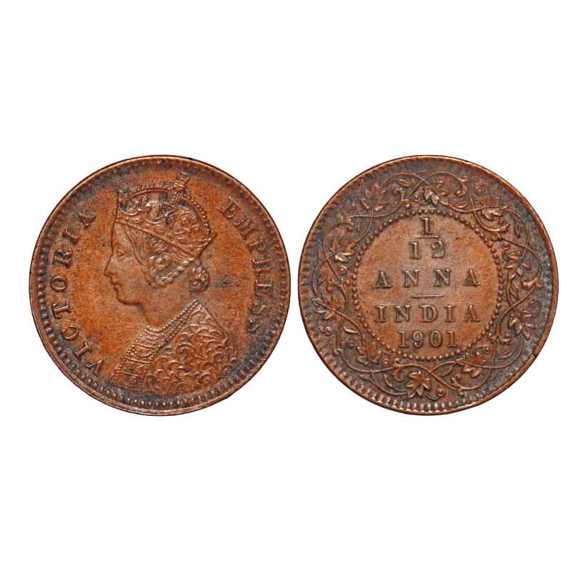 Victoria Empress, Copper, 1/12 Anna, 1901, Calcutta Mint, No mint mark, Obv B. F. Prid 805. GK 921. Extremely Fine. Scarce.