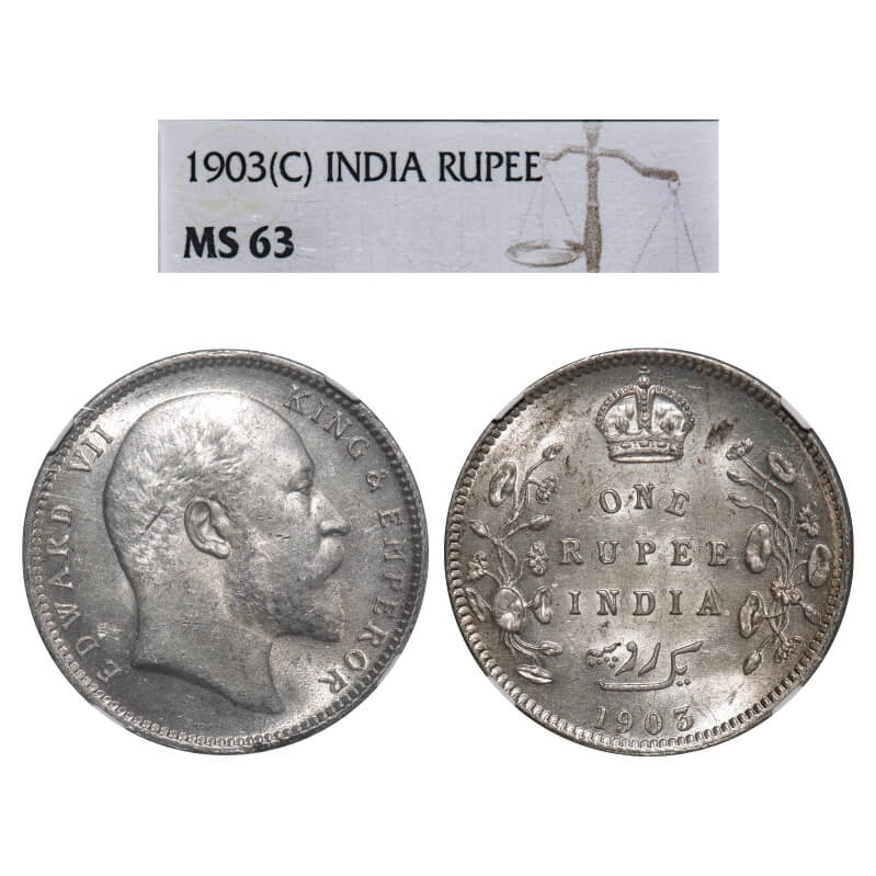 Edward VII, Silver, Rupee, 1903, Calcutta Mint, No mint mark, Normal 5 Diamonds. F. Prid 189. GK 924. NGC Slabbed MS 63. Extremely Rare.