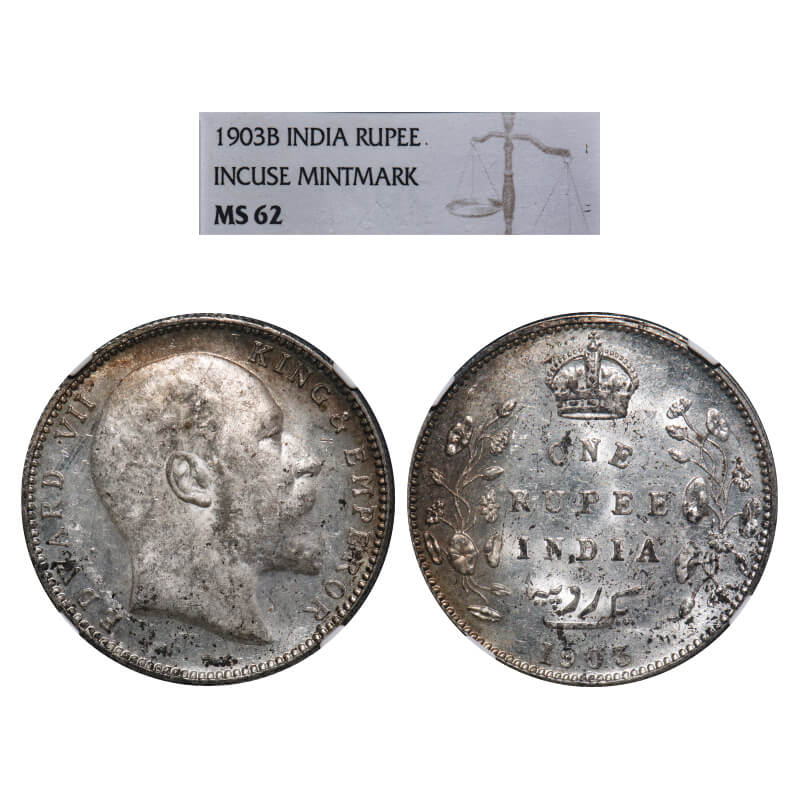 Edward VII, Silver, Rupee, 1903, Bombay Mint, 'B' incused and dot. F. Prid 199. GK 926. NGC Slabbed MS 62. Very Rare.