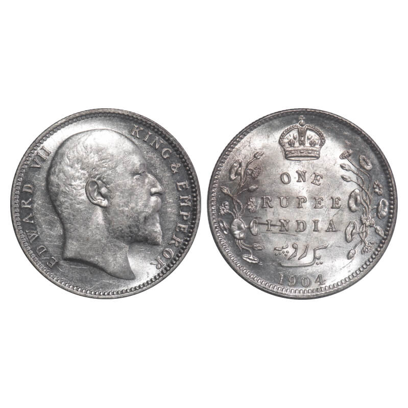 Edward VII, Silver, Rupee, 1904, Calcutta Mint, No mint mark, Normal 5 Diamonds. F. Prid 190. GK 930. Uncirculated with original mint luster. Very Scarce.