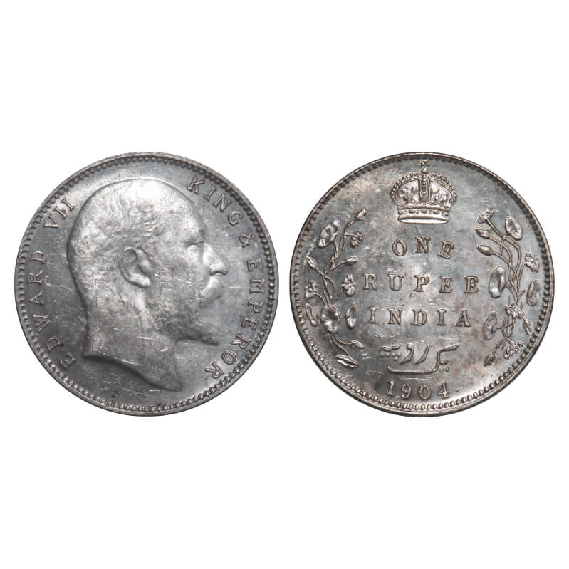 Edward VII, Silver, Rupee, 1904, Calcutta Mint, No mint mark, Normal 5 Diamonds. F. Prid 190. GK 93...
