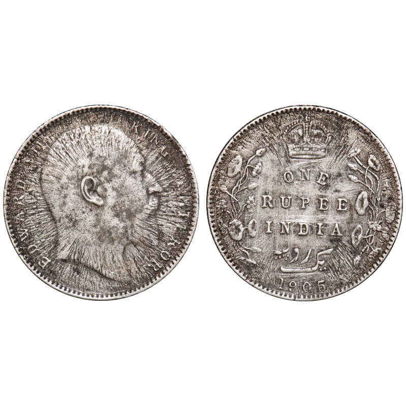 Edward VII, Silver, Rupee, 1905, Error, Sun burst Error. Extremely Fine. Rare.