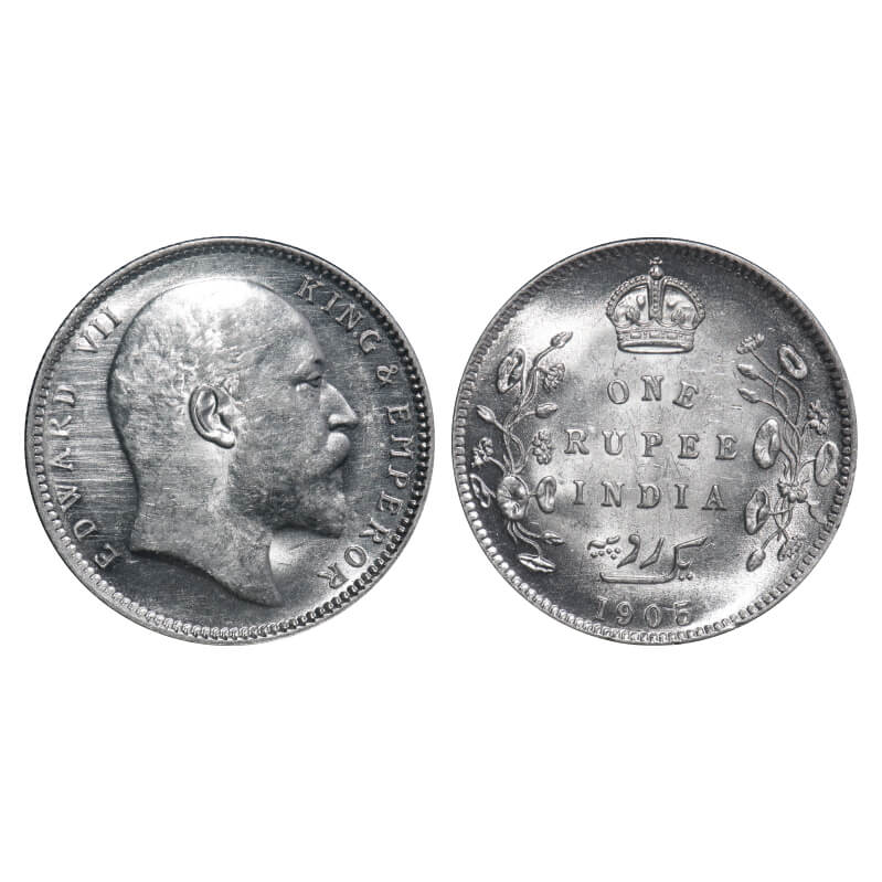 Edward VII, Silver, Rupee, 1905, Calcutta Mint, No mint mark. F. Prid 191. GK 934. Brilliant Uncirculated. Rare.