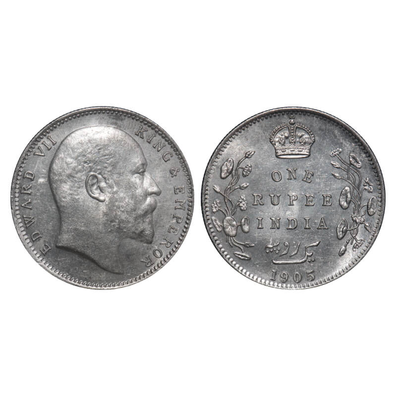 Edward VII, Silver, Rupee, 1905, Bombay Mint, 'B' incused and dot, Top stroke of numeral 5 long. F. Prid 201. GK 936. Almost Uncirculated. Very Scarce.