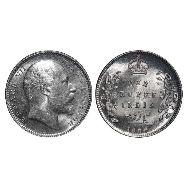 Edward VII, Silver, Rupee, 1906, Calcutta Mint, No mint mark. F. Prid 192. GK 938. Brilliant Uncirculated. Rare.
