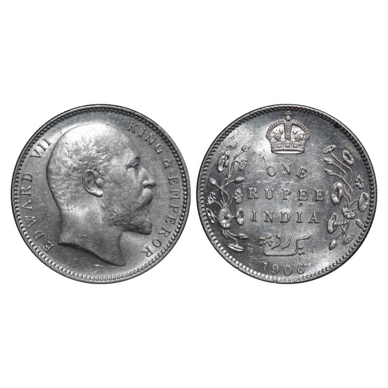 Edward VII, Silver, Rupee, 1906, Calcutta Mint, No mint mark. F. Prid 192. GK 938. Almost Uncirculated. Very Scarce.
