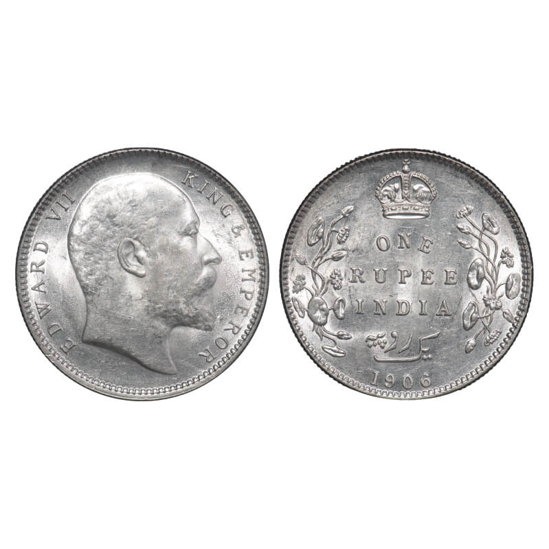 Edward VII, Silver, Rupee, 1906, Calcutta Mint, No mint mark. F. Prid 192. GK 938. Brilliant Uncirc...