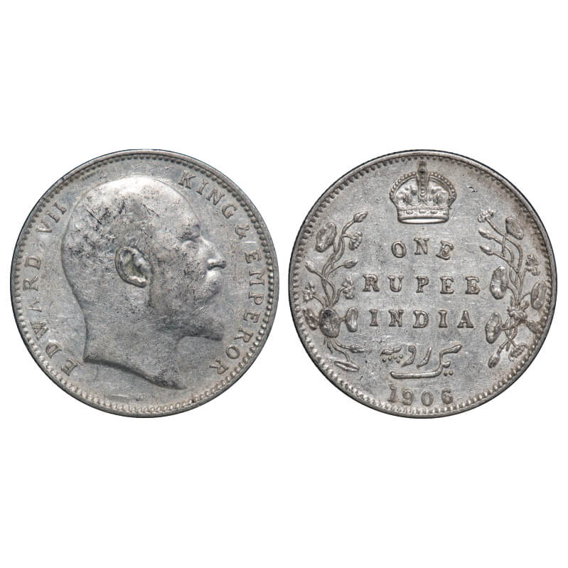 Edward VII, Silver, Rupee, 1906, Calcutta Mint, No mint mark, Ghost on Rev. F. Prid 192. GK 938. Al...