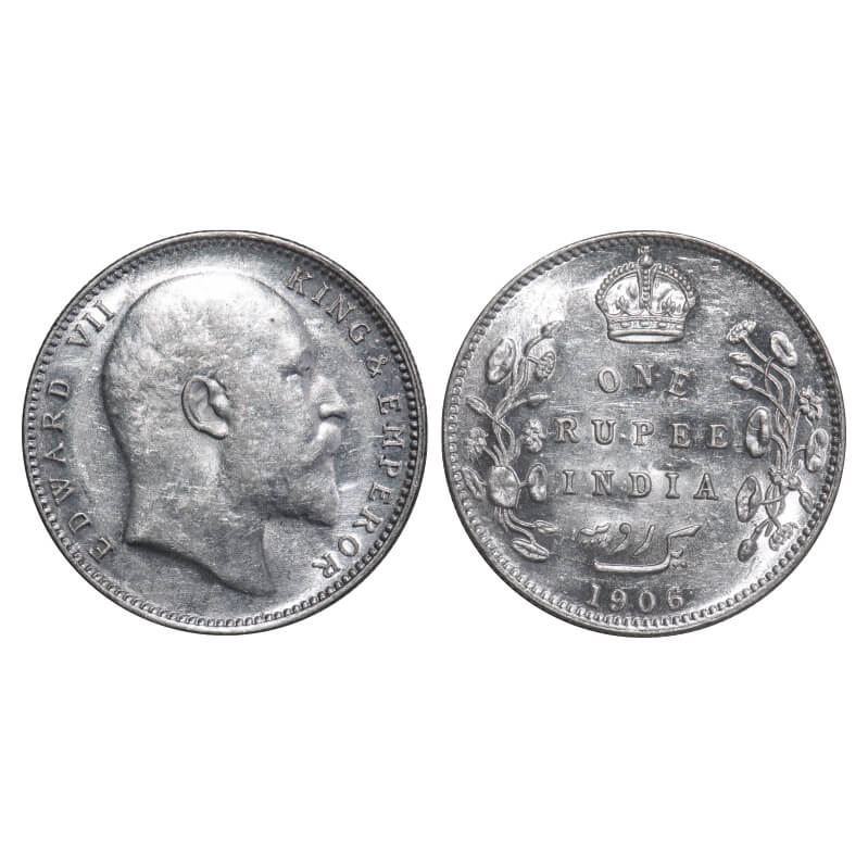 Edward VII, Silver, Rupee, 1906, Bombay Mint, B incused and dot. F. Prid 202. GK 940. Uncirculated ...
