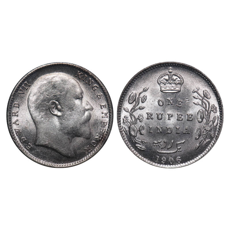 Edward VII, Silver, Rupee, 1906, Bombay Mint, 'B' incused and dot. F. Prid 202. GK 940. Brilliant U...
