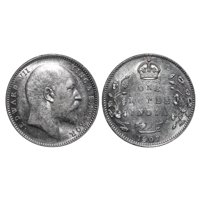 Edward VII, Silver, Rupee, 1907, Bombay Mint, 'B' incused and dot. F. Prid 203. GK 944. About Uncirculated. Very Scarce.