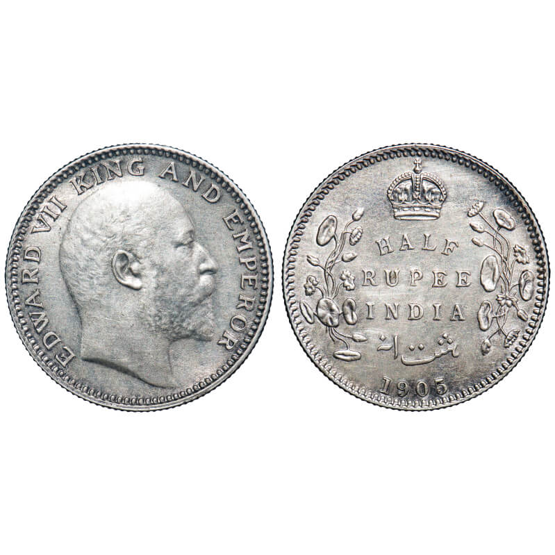 Edward VII, Silver, Half Rupee, 1905, Calcutta Mint, No mint mark. F. Prid Unlisted. GK 960. Almost Uncirculated. Very Scarce.
